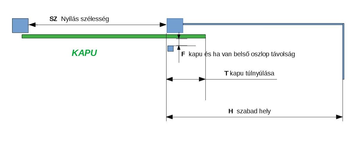 F ( ha van ) belső támasztó oszlop és kapu közötti távolság mm-ben